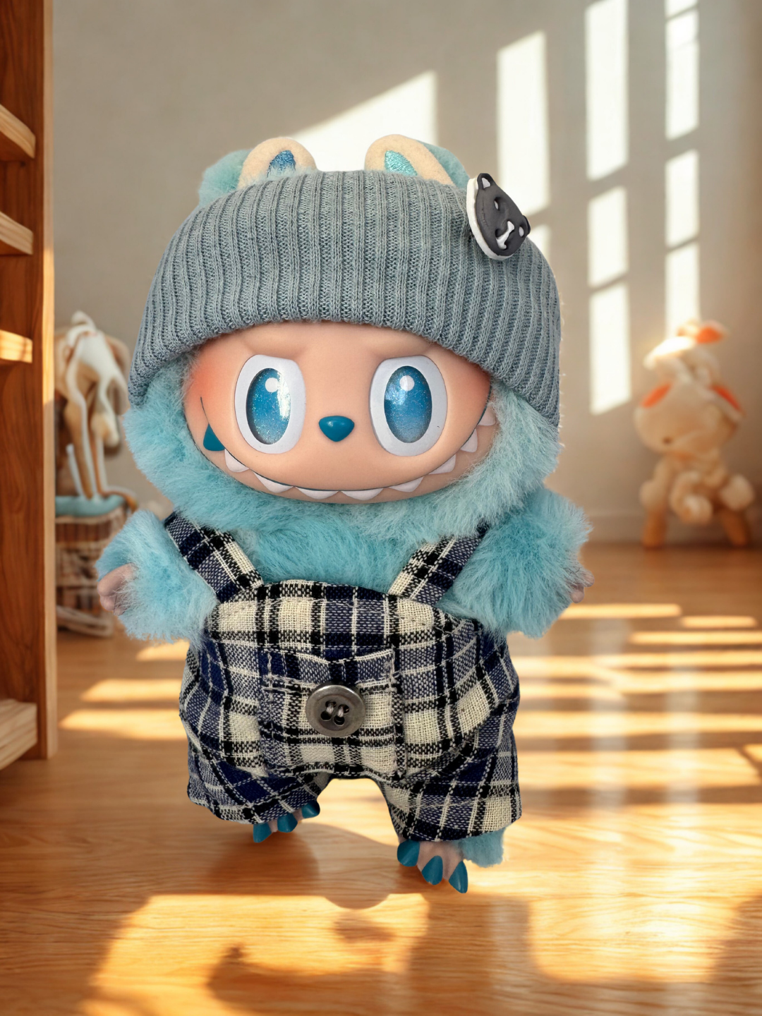 Product form (0) Labubu Clothes - Monochrome Houndstooth Overalls R 240.00Incl. VAT Made locally Slouchy grey beanie topped with a black-panther enamel pin. Black-and-white houndstooth wool overalls with a big center button,... Add to cart This item is a recurring or deferred purchase. By continuing, I agree to the cancellation policy and authorize you to charge my payment method at the prices, frequency and dates listed on this page until my order is fulfilled or I cancel, if permitted. Made locally Slouchy grey beanie topped with a black-panther enamel pin. Black-and-white houndstooth wool overalls with a big center button, giving it a tailored yet playful edge. Share with your friends Share WhatsApp Deel X Pin it Messenger Email