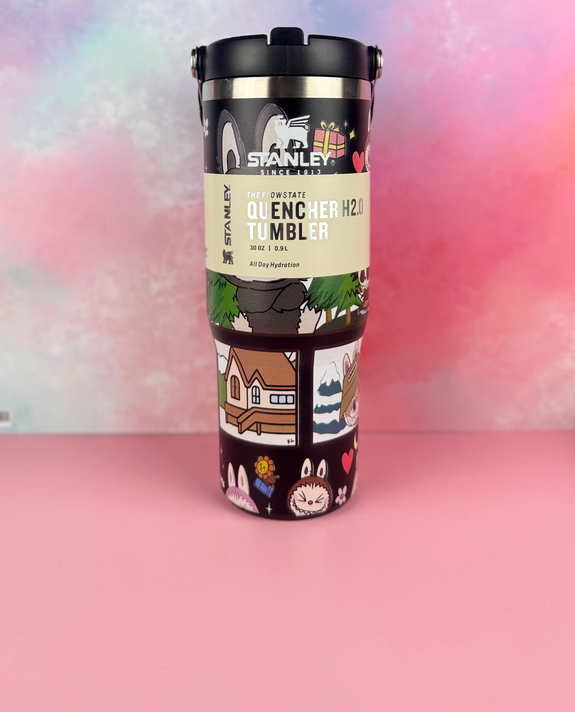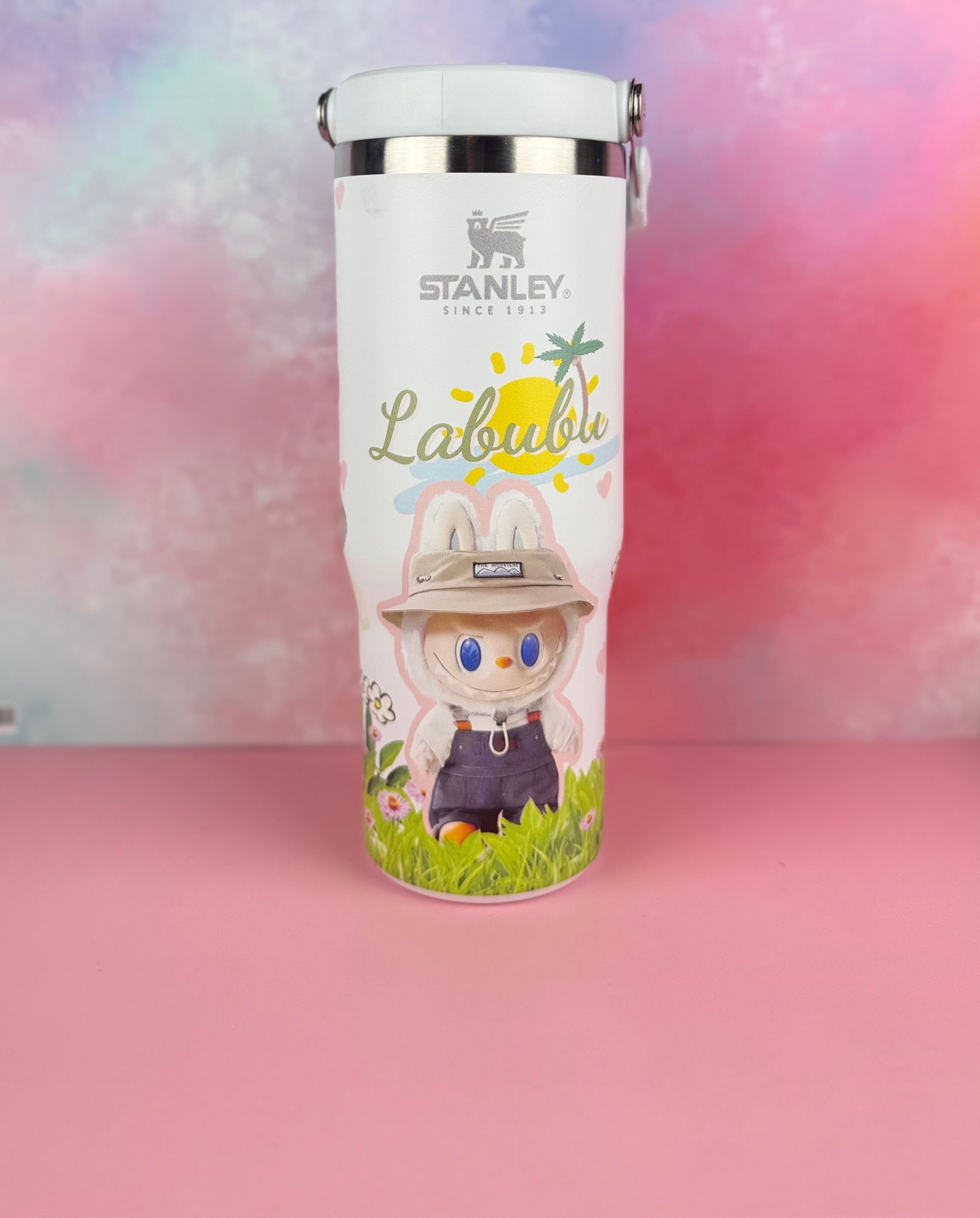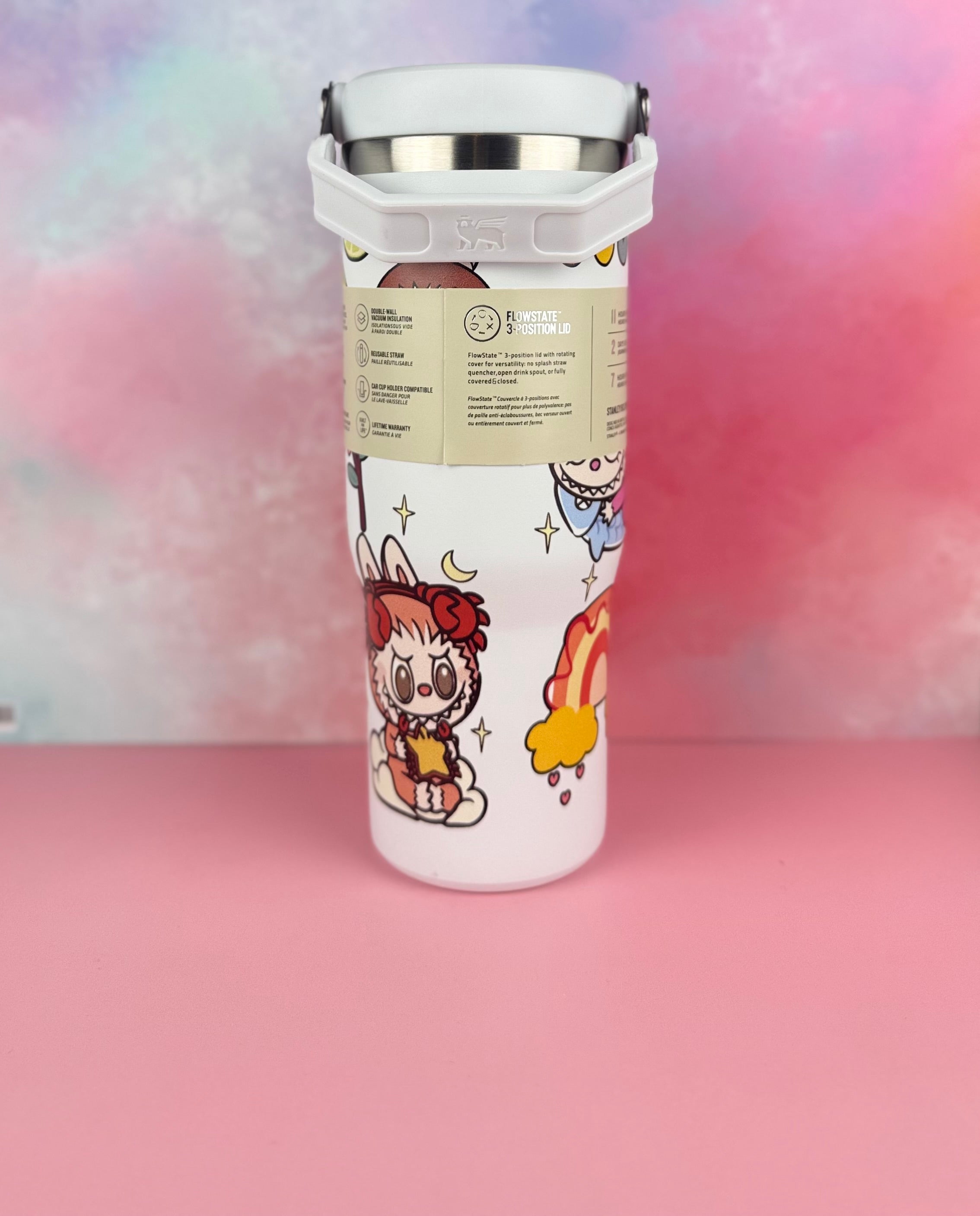 This stunning limited edition Stanley flip straw tumbler brings together iconic durability with an irresistible aesthetic design inspired by the whimsical world of Labubu.