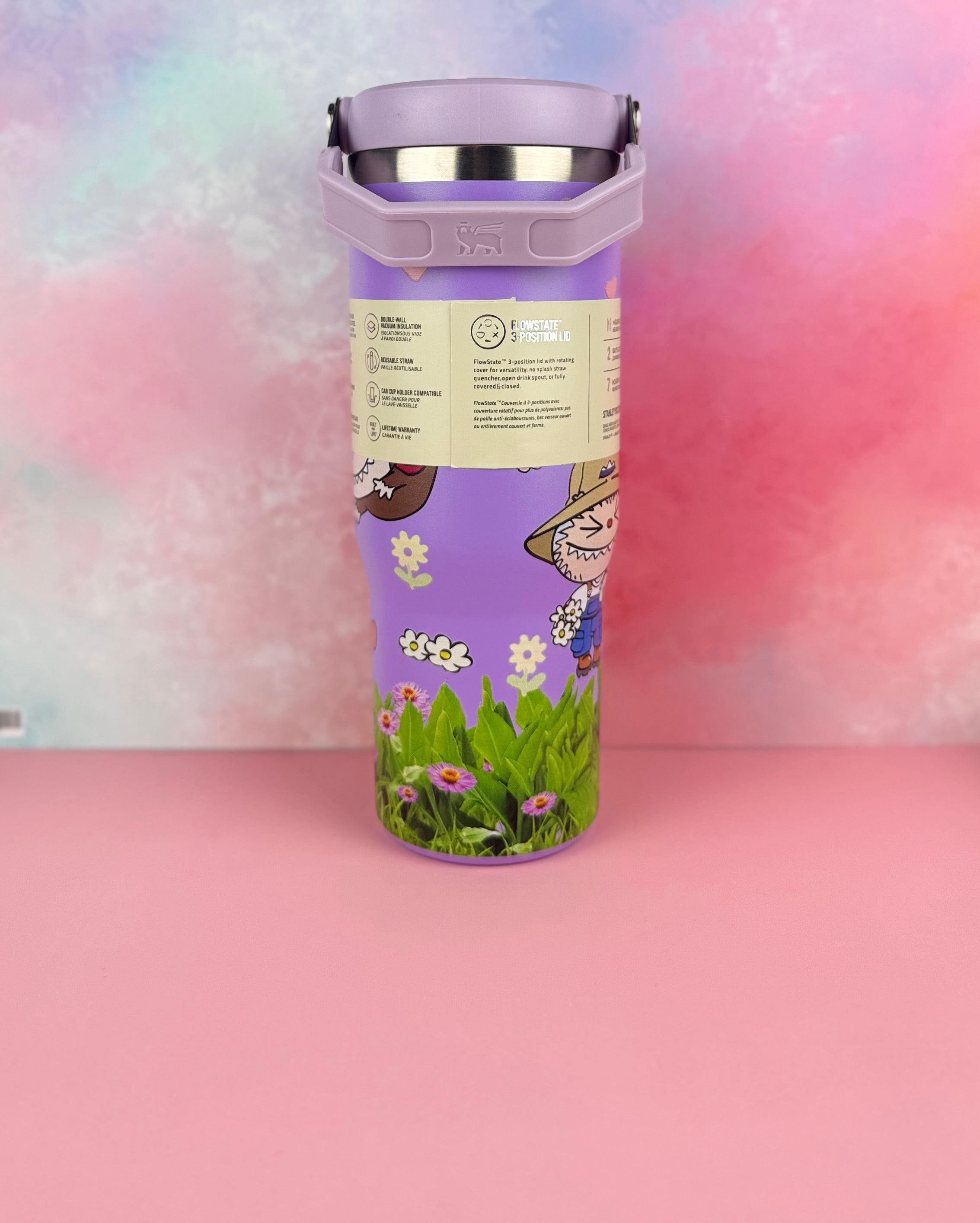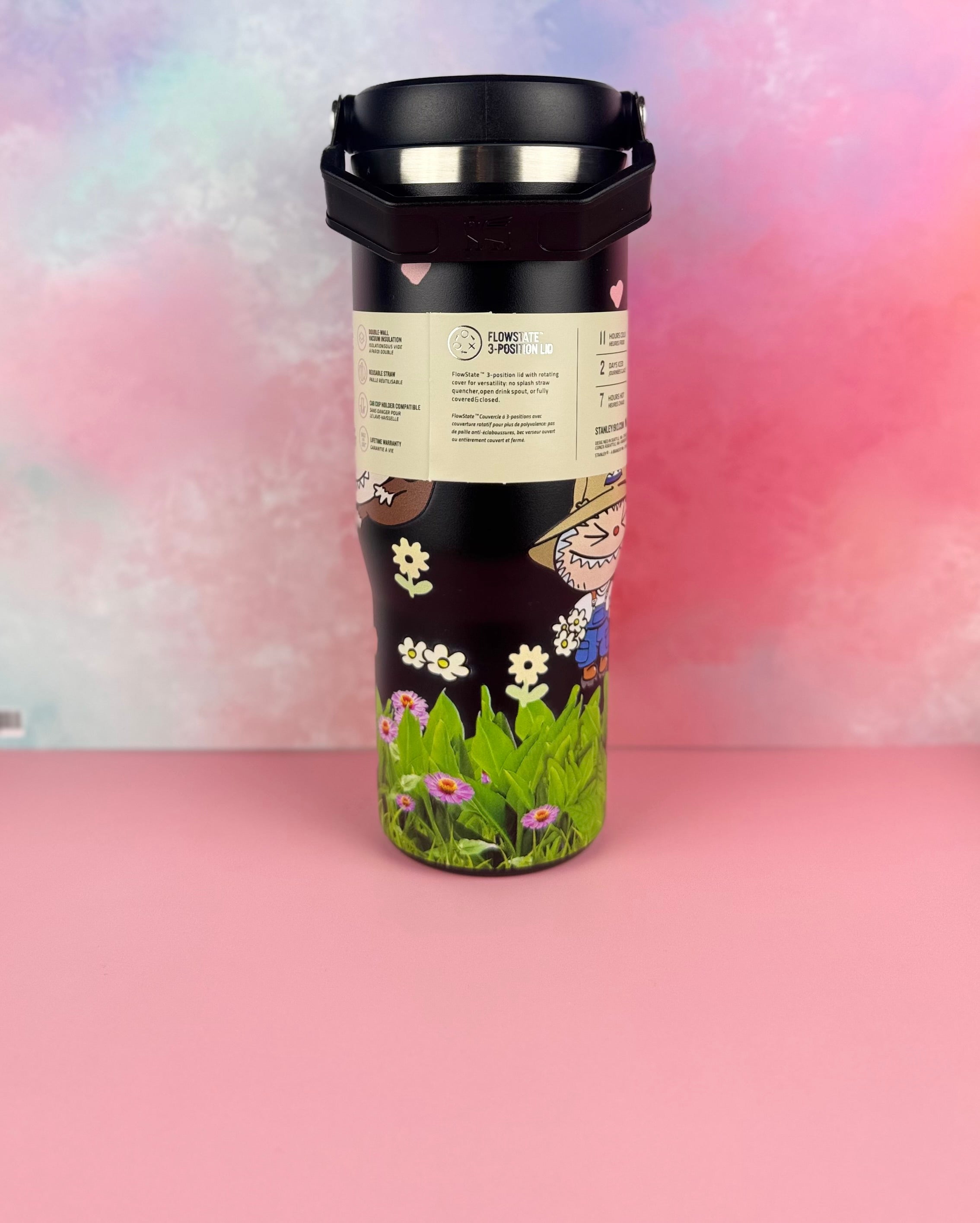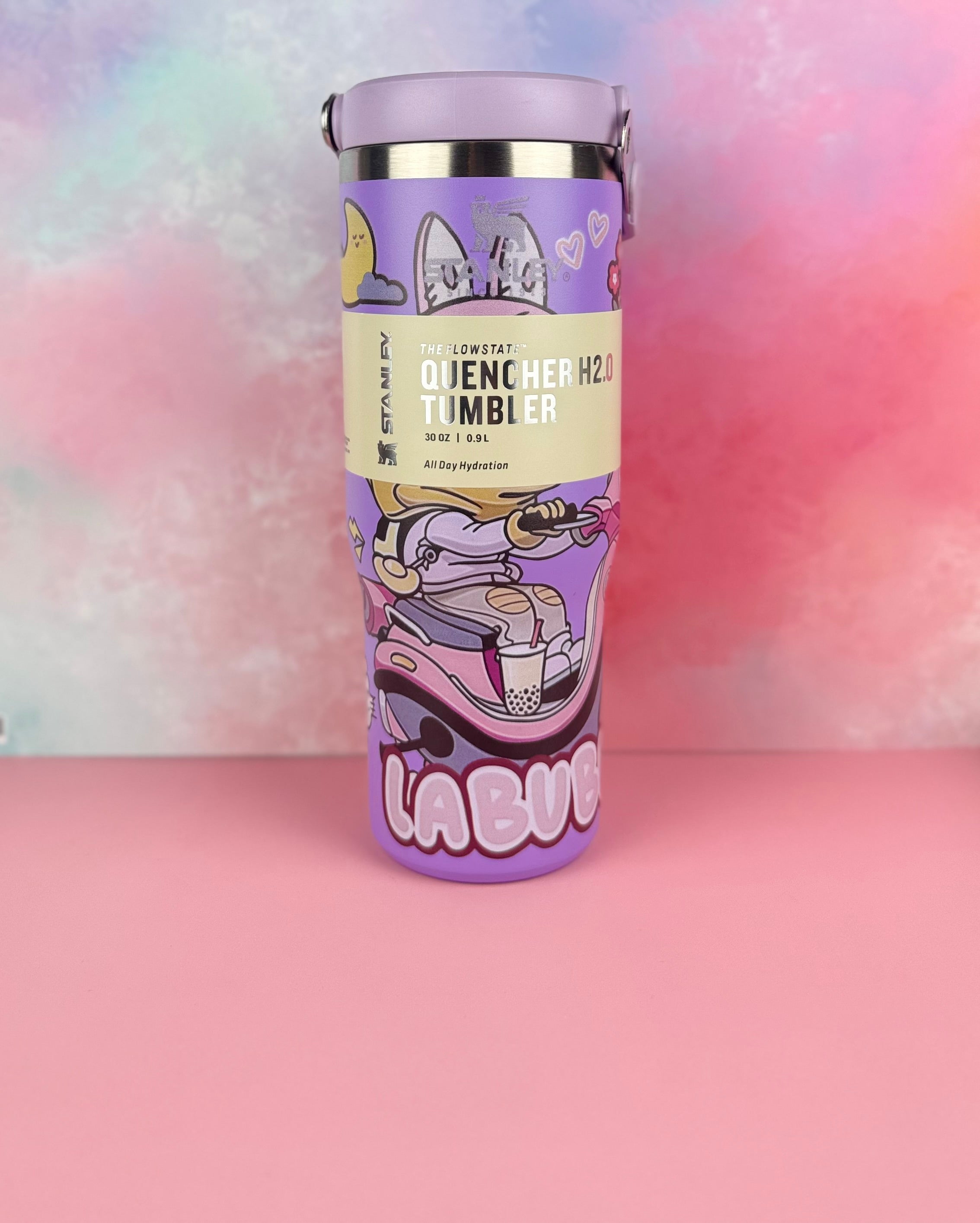 This stunning limited edition Stanley flip straw tumbler brings together iconic durability with an irresistible aesthetic design inspired by the whimsical world of Labubu.